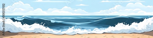 © Cdric, Obraz premium Serene Ocean Waves on Sandy Beach - Vector Illustration