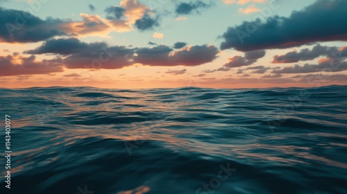 © Sawat, Fototapeta premium Serene Ocean Waves Under Colorful Sunset Sky with Soft Clouds
