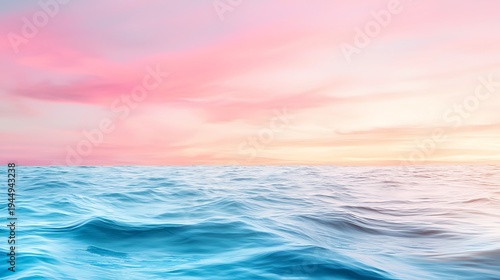 Obraz premium Serene Ocean Waves Under Colorful Sunset Sky with Soft Pink and Blue Tones