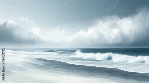 Fototapeta premium Serene Ocean Waves with Soft Clouds in a Calm Waterscape