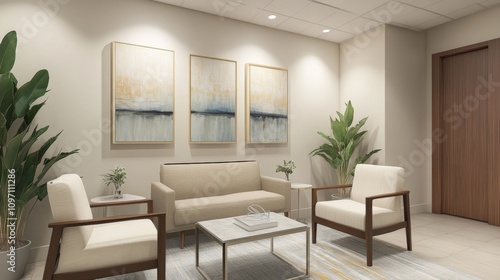 Fototapeta premium Serene Office Waiting Area: Modern Interior Design