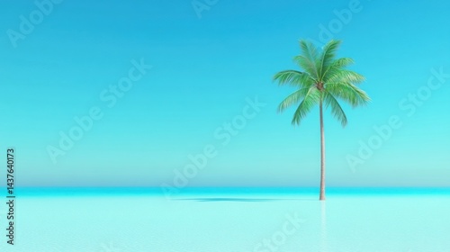 © Tri, Fototapeta premium Serene Palm Tree Paradise: Minimalist Tropical Seascape