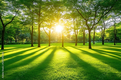 © masud, Fototapeta premium Serene Park Landscape Under Sunny Sky