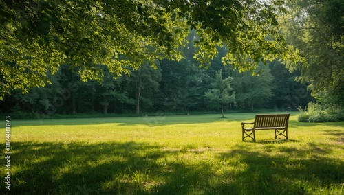 © The 2R Artificiality, Fototapeta premium Serene park landscape with walking trail and lush greenery, ideal for leisure and relaxation