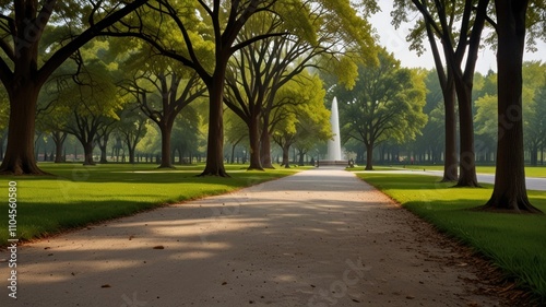 Fototapeta premium Serene park path leading to fountain.