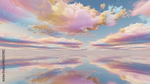 Obraz premium Serene pastel-colored sky with dramatic cloud formations reflected on...
