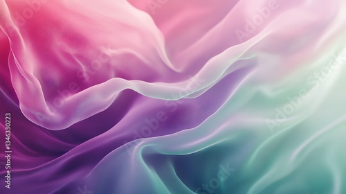 Obraz premium Serene pastel fabric draped in soft, ethereal waves, showcasing a dreamy gradient of pink, purple, and mint green hues.