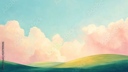 © isend, Obraz premium Serene Pastel Hillscape: A Dreamy Landscape Under a Soft Pink and Blue Sky