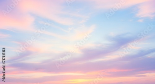 Fototapeta premium Serene pastel sunset sky with wispy clouds, creating a tranquil atmosphere...