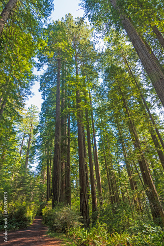 © wildnerdpix, Obraz premium Serene Path Through Forest Giants