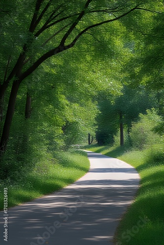 Obraz premium Serene Path Through Lush Green Trees