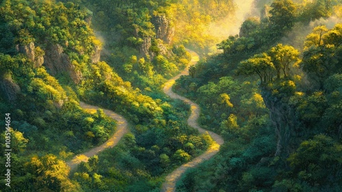© pinporn manosri, Fototapeta premium Serene Path Through Lush Green Valley