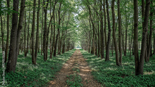 © Elena, Obraz premium Serene pathway through a paper crafted forest