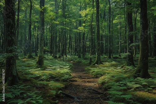 © AS Photo Family, Obraz premium Serene Pathway Through Lush Aokigahara Forest during Daytime