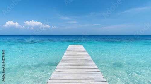 © naphat, Obraz premium Serene Pier Overlooking Coastal Horizon - Copy Space Available for Text