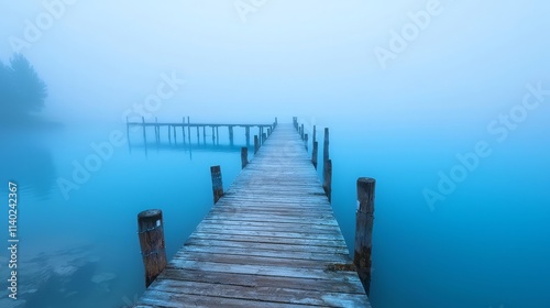 © Phunnada, Naklejka premium Serene Pier Stretching into Misty Waters