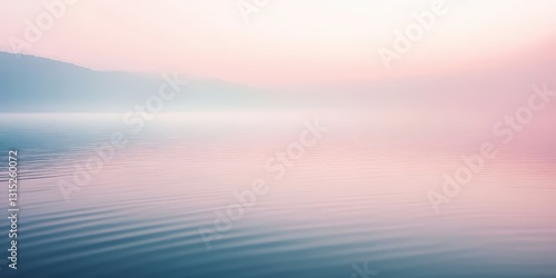 © rfdsgns, Obraz premium Serene pink and blue lakeside morning landscape with distant hills