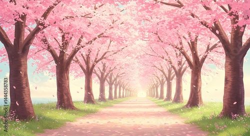 Fototapeta premium Serene Pink Blossom Tunnel Path to Light