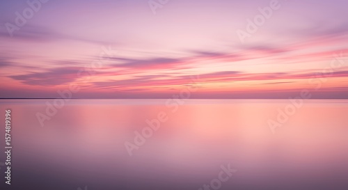 Fototapeta premium Serene Pink Purple Sunset Over Calm Water Landscape