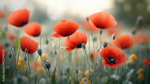 Obraz premium Serene Poppy Field at Dawn