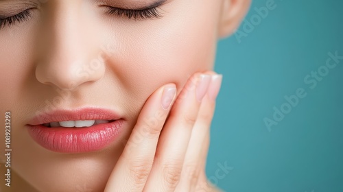 Obraz premium Serene portrait, a woman's contemplative expression with hand on face portrait
