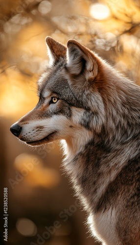 © decorator, Obraz premium Serene profile portrait of a wolf soft light and intricate fur patterns evoke nature s connection