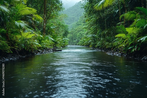 © Shades3d, Obraz premium Serene Rainforest River Scene