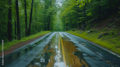 Fototapeta premium Serene Rainy Day Drive: Embrace Nature's Refreshing Palette