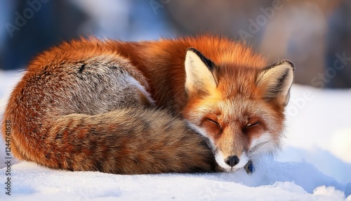 © netsay, Naklejka premium Serene Red Fox Huddled in Snowy Landscape Winters Embrace Captured in Frozen Moment Amidst the Tranquil Wilderness