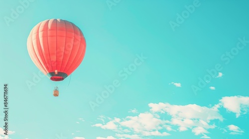 © Viam, Obraz premium Serene red hot air balloon journey in a clear blue sky