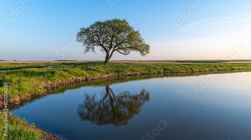 Fototapeta premium Serene Reflection of Tree by Calm Water Body