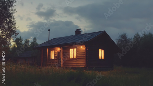 Obraz premium "Serene Retreat: Country Cottage Under the Evening Sky"