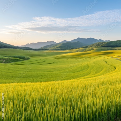 © Manganese, Fototapeta premium Serene Rice Terraces in Mountain Valley.