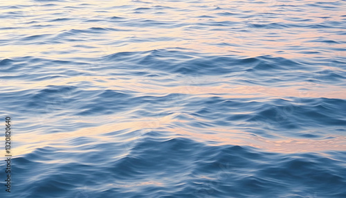 Naklejka premium Serene Rippling Waves Under Soft Sunrise Light on Calm Water Surface