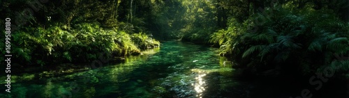 Fototapeta premium Serene river flowing through forest hdr panorama