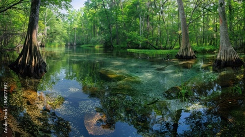 © Alfa, Obraz premium Serene River in a Lush Forest