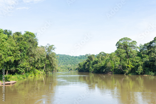 © Sloek Prey, Fototapeta premium Serene River in Forest Landscape with Reflections and Blue Sky