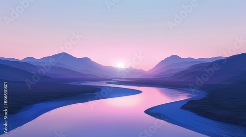 Obraz premium Serene River Valley at Sunset