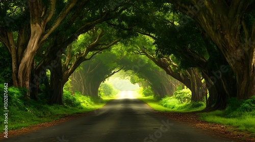 © Alexar_JavaCreator, Naklejka premium Serene road photography in lush green nature travel destination tranquil environment captivating viewpoint