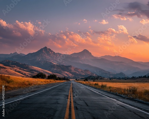 © onnitcha, Naklejka premium Serene road through majestic mountain scenery.