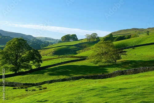 © Agri, Obraz premium serene rolling countryside with farm in the morning sun