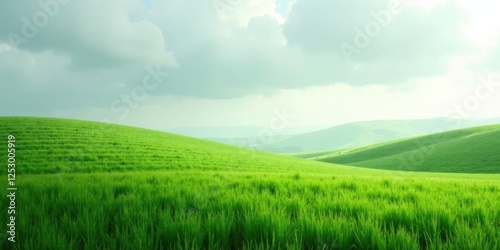 © vattana, Naklejka premium Serene Rolling Hills Landscape Featuring Lush Green Meadows Under a Cloudy Sky