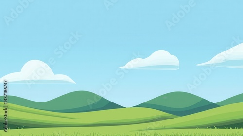 © Esmeralda, Fototapeta premium Serene Rolling Hills Landscape Under a Blue Sky with Fluffy Clouds
