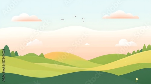 © Nu, Obraz premium Serene Rolling Hills Landscape Under a Pastel Sky