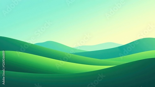 Fototapeta premium Serene Rolling Hills Under a Calm Sky A Tranquil Landscape Illustration Featuring Lush Green Meadows and Gentle Slopes