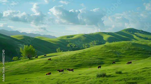 Obraz premium Serene Rolling Hills with Grazing Cattle