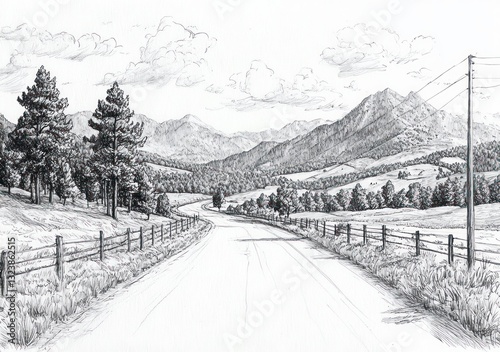 © lucky, Fototapeta premium Serene Rural Countryside Landscape with Mountains and Forests