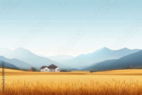 Fototapeta premium Serene Rural Landscape with Golden Wheat Fields