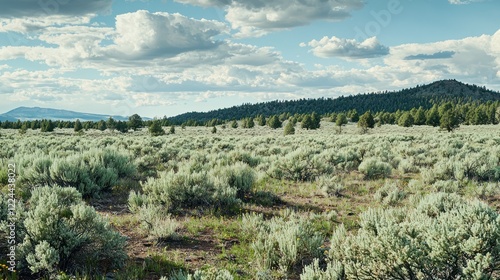 © isend, Obraz premium Serene Sagebrush Landscape Under a Cloudy Sky