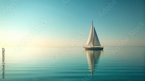 © parichart, Obraz premium Serene Sailboat Gliding Across Tranquil Waters at Dawn, a Peaceful and Solitary Voyage on the Open Ocean